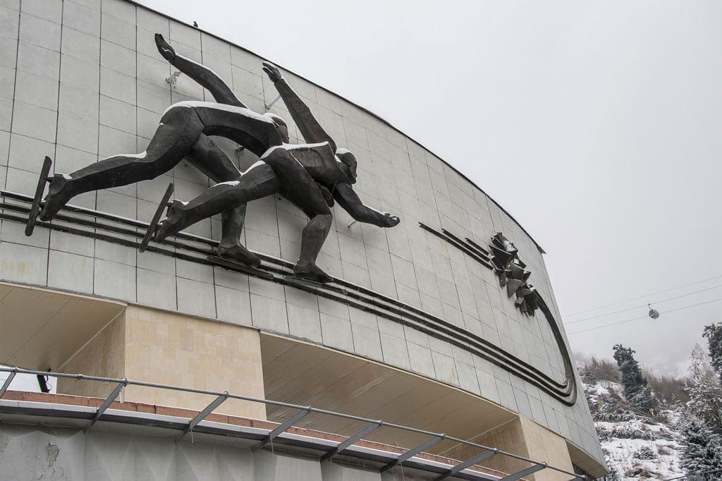 Located at 1,691 metres in a beautiful, snow-bedecked landscape of mountains and trees, more than 120 world records were set at this open-air, Soviet-era skating rink. It used to be among the top ones in the world, and despite the fact that Medeu has lost some of its former glory, you can still sense the Soviet sporting ambition and prestige. There’s 10,500 m2 of ice and, although now less than in its Soviet heyday, a spectator capacity of 8,500 people. While my wife was practicing for old age making her first steps with the help of a walking frame, I started doing rounds on my rented skates. I never thought I’d swirl on ice with a crowd of teenage couples to Russian pop music blasting out of the stadium’s speakers. When half an hour later I spotted my wife gliding by without walking frame, another record could be added to the rink.