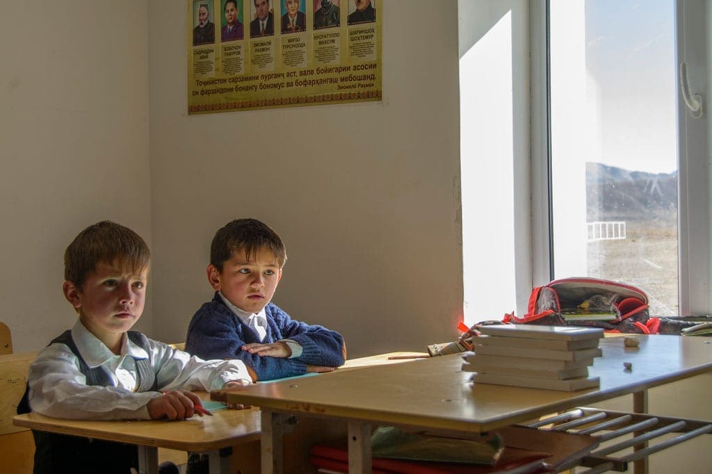 On our way to Bulunkul, we passed rows of disused telegraph poles and concrete shells of abandoned, isolated buildings – relics of former Soviet infrastructure that only reinforce the sense of abandonment that now reigns in these isolated parts. There’s hardship, anxiety and decline, but also a human connection, resilience and resourcefulness. One doctor here has chosen to stay, and there’s a small school. Bachtene, the mother of Orzu, is the head teacher. The next morning we accompany her to deliver some school supplies we brought with us from Dushanbe. The classes are immaculate and the children are eager – a testimony to Orzu’s dedication.