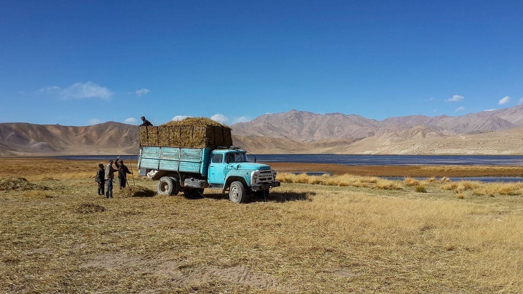 Jizev is both idyllic and tragic. There are only 14 families and the rest of the school supplies that we tugged along arrive too late – there are no more small children in this tiny community. They have grown and now go to boarding school in town while, apparently, few return when they reach adulthood. Electricity comes from solar panels and wood is burnt for heating. Sheaves of hay stacked on the fields, clear waters in a tranquil lake reflecting the surrounding mountains, birdsong and clean air – Jizev has got all the key ingredients for a Shangri-La, yet life here is tough. But Gulsha, the man who welcomes us with tea, sweets and fresh, tandoor-baked bread, is optimistic. “Tourists are coming,” he says and points to a door he’s been carrying up the mountain. It’s to improve his homestay.
