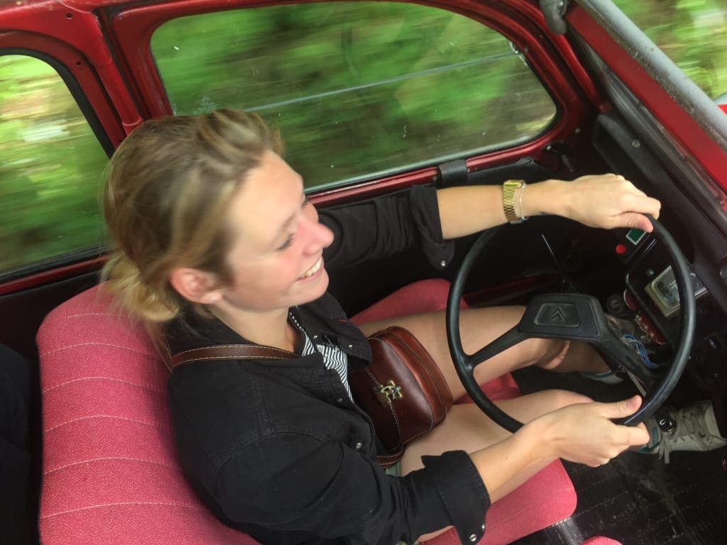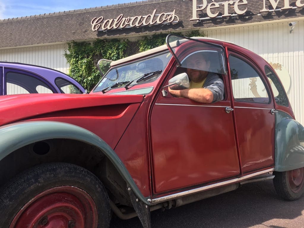 Standing on the seat of the 2CV, I feel the wind whistling through what’s left of my hair. Kerry, my companion for the morning’s drive, warns me to duck as a branch comes veering towards me. Demonstrating the skills of a limbo dancer very much out of practice, I manage to avoid calamity, and once more breathe in the glorious air. This is living. Is it the sudden rush of adrenaline which makes me feel this way, or the effect of drinking Calvados at ten in the morning, I wonder.
