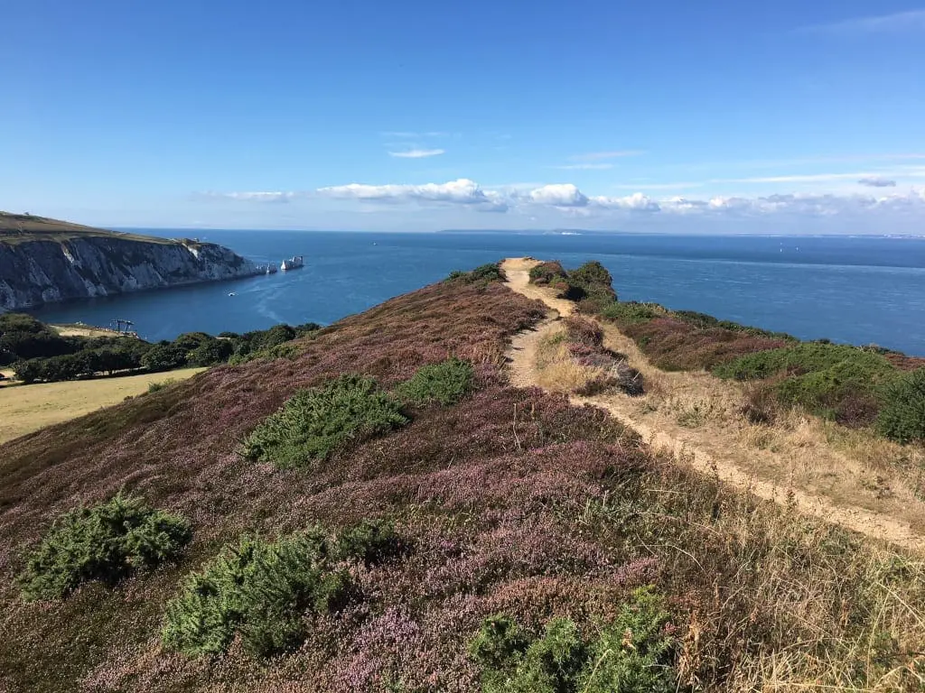I set off from the beach at Totland Bay, which is one of the cleanest in the country and ideal for an early morning or late evening dip, and then climb up the path to Headon Warren. This was always my aunt’s favourite spot on the island, and I have to agree with her. While Tennyson (or High) Down is a verdant green, Headon Warren is a natural wilderness which explodes into the most glorious purple in the summer, and has far better views down to the Needles.