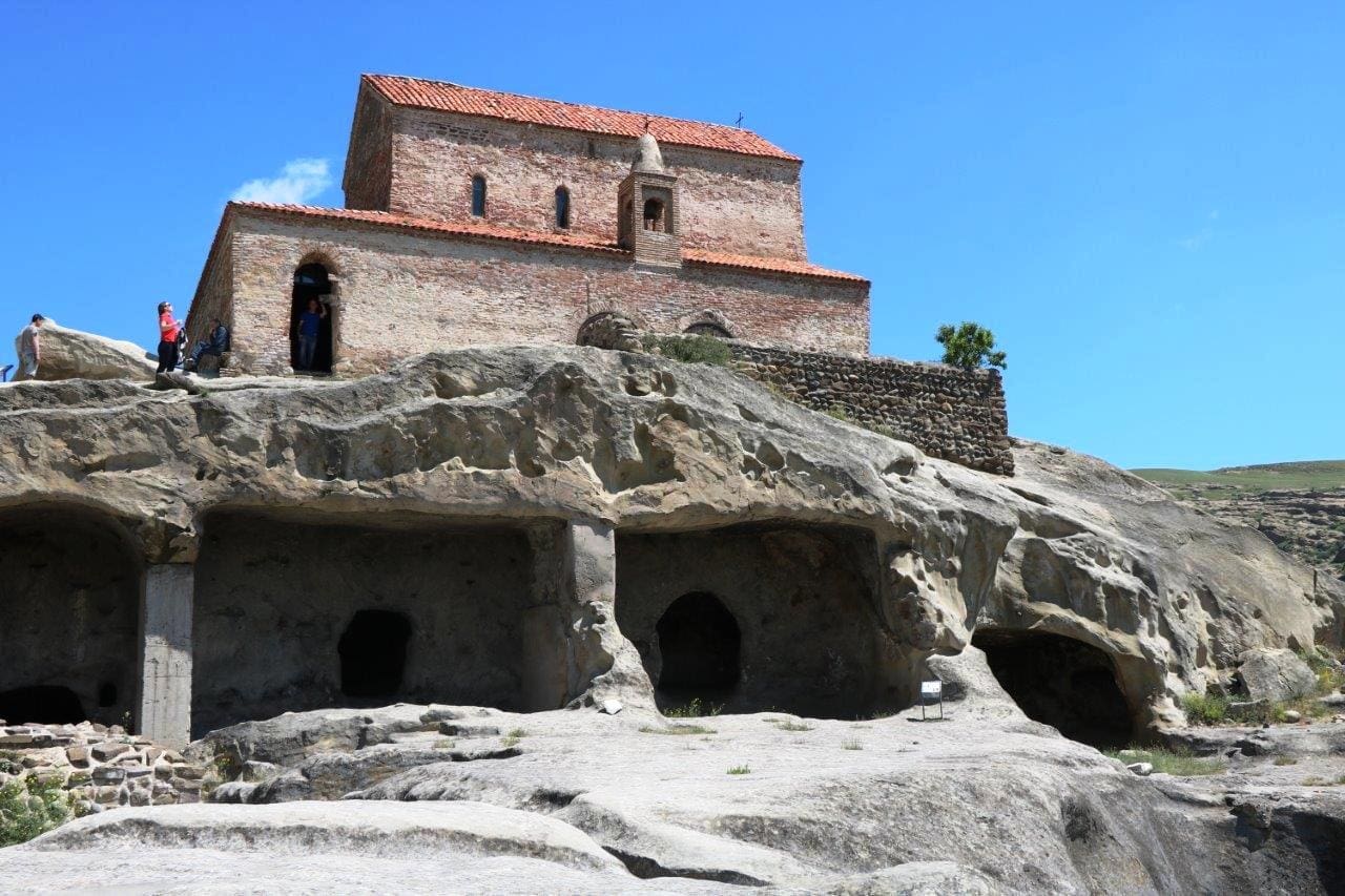 Next morning, after the lightest of breakfasts – except I’m a sucker for chocolate croissants – I set off for the cave town of Uflistsikhe. Built high on a cliff in Kartli and overlooking the Mtkvari River, Uflistsikhe is one of the earliest settlements in Georgia, dating back some three thousand years. It was a major centre in the pre-Christian era, when the sun-goddess was worshiped. With the arrival of Christianity the focus moved to Mtskheta and Tbilisi, but the town, which at its peak was home to an estimated 20,000 people, survived. A small Christian basilica from the ninth and tenth centuries sits at the top of the cliff.