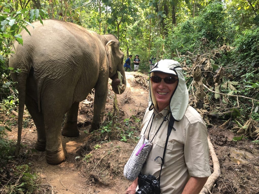 While on my tuk tuk journey around northwest Thailand, I had stopped at the Maevang Elephant Home, a place where tourists used to ride elephants, but that has, like me, been converted. There, we followed the elephants down to the river, and as at the Mondulkiri Project we washed them behind their ears.