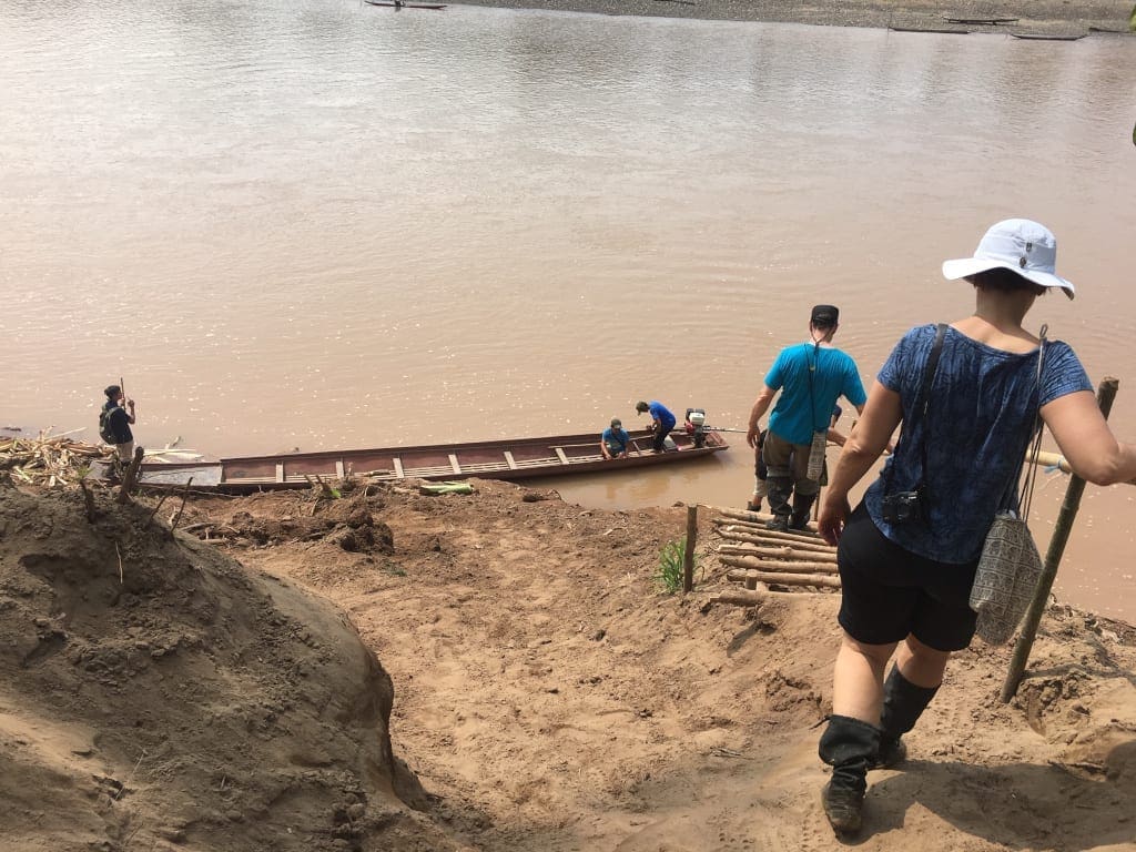 After our instructions, we took a small boat across the Nam Khan river to the sanctuary where the elephants are kept. There we met our two walking companions, Buan Gen (35) and Mae Man, (40), whom we promptly fed with bananas.