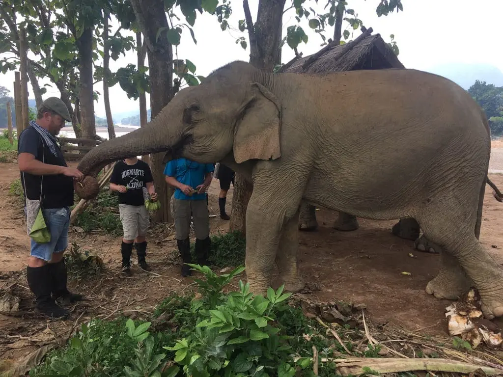 Our visit starts with a talk from our guide Than, who explains the house rules, as well as the Mandalao philosophy. Here people are allowed to touch the elephants, but there is no riding and no bathing with them.
