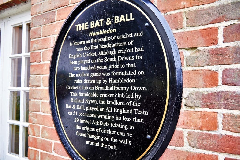 Although cricket predates the pub by more than a couple of centuries, it was here that the complex rules began to evolve, no doubt by men with a penchant for mischief – perhaps after one too many pints of ale. When the debate became heated they would have to pass from one side of the bar to another, as the Hutt strode the boundary between the parishes of Hambledon and Clanfield, which had different licensing hours; a white line now marks the divide.