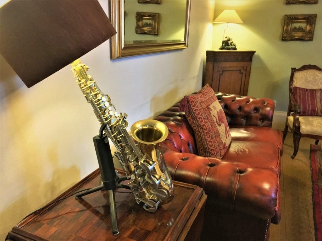 That evening we gathered in the drawing room on the comfortable Chesterfields just long enough to enjoy a gin and tonic and take in the eclectic furnishings with an emphasis on elephants and jazz, including a lamp created from a saxophone, before being escorted to our table in the dining room by Craig.