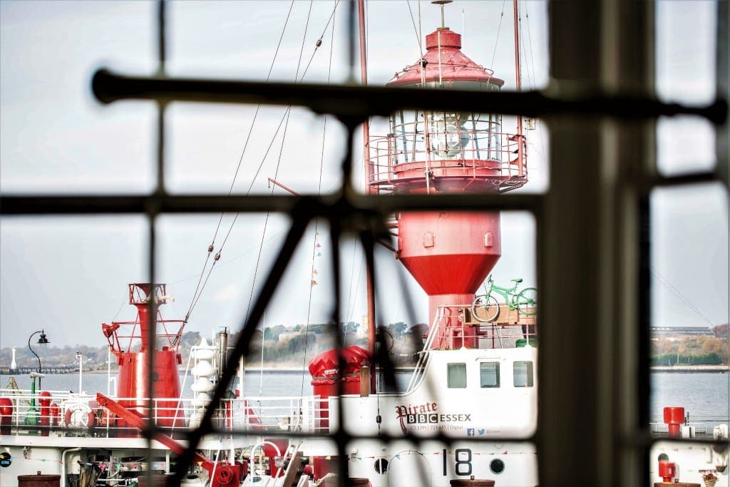 We stayed in the Angel annex, in the spacious Mayflower Suite at the front, with glorious views from a wide bay window out over the quirky Ha’penny Pier and to the harbour beyond. The room’s permanent telescope helped us view the colourful display of commercial and pleasure boats, but we didn’t need it for the vessel moored right in front of our window – the splendidly maintained, deep red, light vessel LV18, formerly a protector of local seafarers but best known for taking the part of Radio Caroline in Richard Curtis’s movie The Boat That Rocked, starring Bill Nighy, Kenneth Branagh and the late Philip Seymour Hoffman.