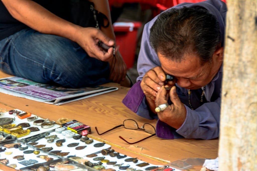We’ll dive straight into the deep end at the Thung Fa Bot weekend market in San Pa Tong district. Founded in 1959, Kad Ngua – as it is known in the local Lanna dialect meaning “market of cows” – was originally a trading spot for merchants of cows and buffaloes. Today, it has grown into the biggest livestock market in northern Thailand, but it’s not only cattle that is sold here – nowadays, over 600 merchants trade anything from pets, clothing, food, ceramics and rare accessories, to machetes, flowers, used motorcycles and bicycles.