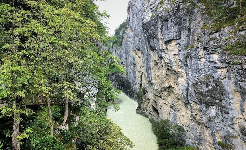 It takes us the best part of an hour to navigate the narrow path as it snakes its way beside the River Aare, with the rocks rising up on the other side of the waters.