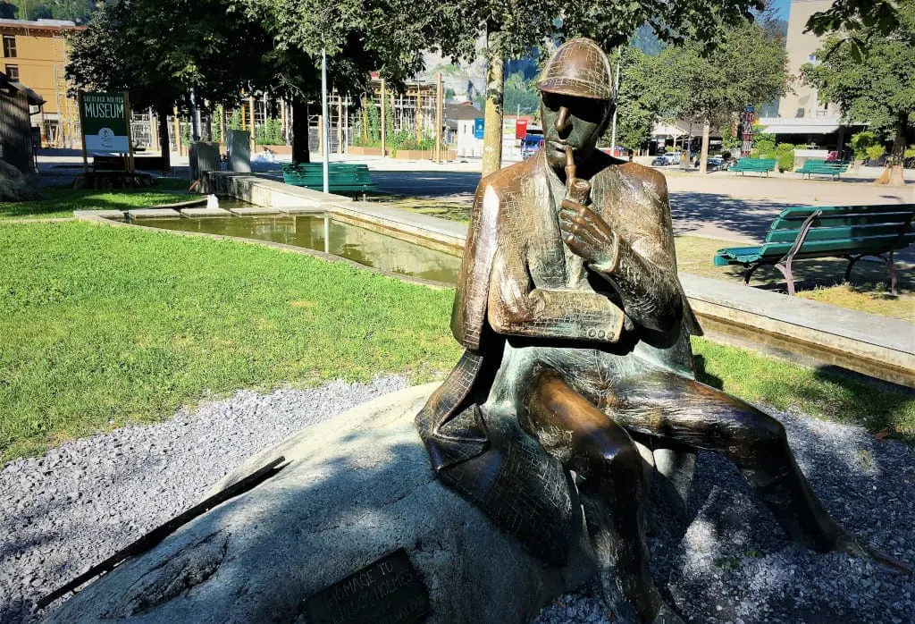 On our last morning, we take a short walk and even shorter funicular ride to the Reichenbach Falls where Professor Moriarity struggled with Sherlock Holmes to deathly consequence. A star marks the point where they struggled. There is also a small Sherlock Holmes museum in town, outside of which is a statue of Holmes as well as information explaining author Conan Doyle’s visit to the town and the story.