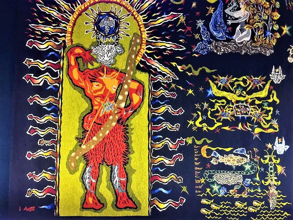 Jean-Lurçat’s work has clear echoes of its 14th century predecessor, with Hiroshima Man (1957) depicting the skeleton of a man with his skull ablaze, particularly striking. Like the Apocalypse Tapestry, the work is incomplete on this occasion due to the artist’s sudden death while his project was as yet unrealised.