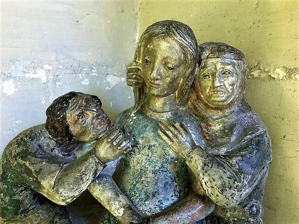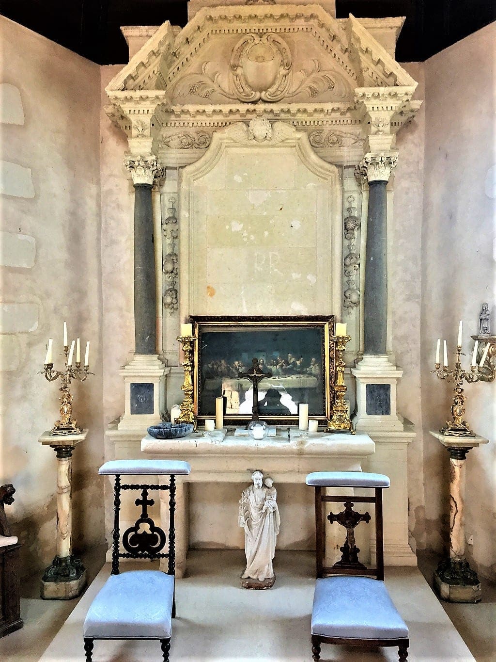 The property’s other stand out feature is the small chapel, in which there is a statue of Joan of Arc, dressed as a woman while being groped by a male English jailor, while his French co-jailor stands in humbled awe.