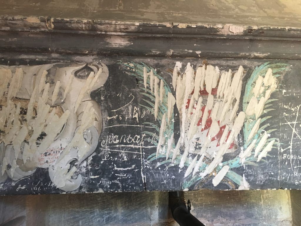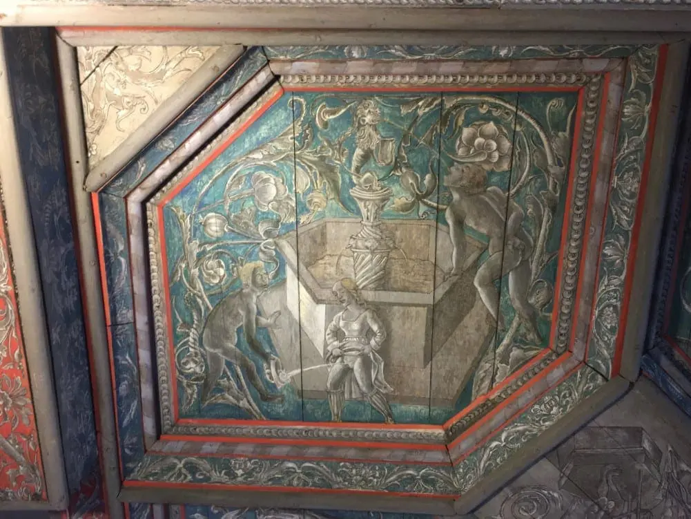 The roof of the Guard’s Room is particularly spectacular, with graphic images that leave little to the imagination. Presumably designed to shock Bourré’s guests, the images so offended one subsequent owner that they were covered up. This perhaps explains how they were preserved through the French Revolution, when other symbols of aristocratic rule, such as the coat of arms above the fireplace were erased and replaced with graffiti.