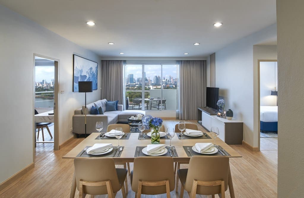 This explains why Bangkok has a large supply of serviced apartments of varying accommodation standards. Well-located on Sukhumvit Soi 16, with views of the nearby Benjakitti Park, and just a ten-minute walk from Asoke BTS and Sukhumvit MRT, Shama Lakeview Asoke Bangkok is one of the more relatively youthful properties, having undergone a major year-long new renovation completed in April 2019.