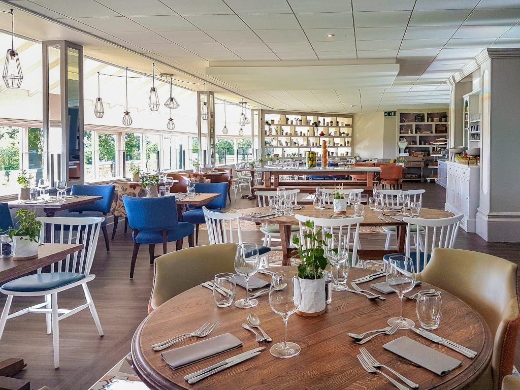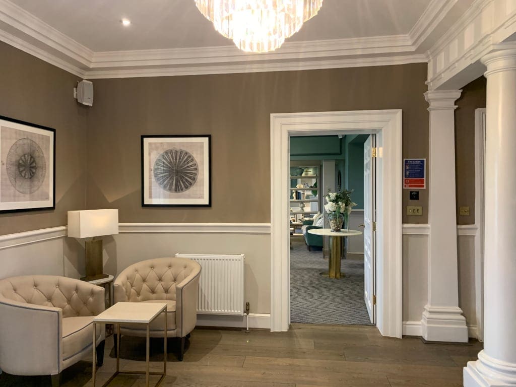 From the piles of carefully selected hardback books in the bar, to the pretty pink hot water bottle on my bed, I felt very indulged. The furnishings are made from high quality wool and linens. Colours throughout are the soft blues, teals and golds of the natural world. There are plenty of restful seating areas offering plump sofas festooned with cushions to settle in on a rainy afternoon. Over a glass of prosecco in the lounge before dinner I thumbed through an early book by chef Gary Rhodes and snapped a few interesting recipes with my iPhone and felt quite at home.