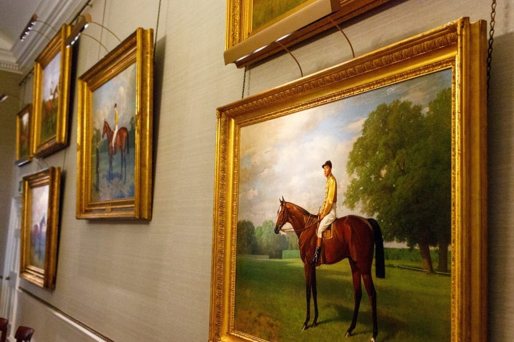 For example, countless Derby winners stare down from the walls of the Dining Room. Then in the Morning Room and the Card Room there are masterpieces by Stubbs – ‘Eclipse’ and a version of ‘Gimcrack’ – while Alfred Munnings’ 1921 painting of ‘Buchan’, a champion sire owned by club member Lord Astor, also hangs here.