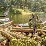 Kaptai Lake is simply stunning. It’s sprinkled with islands of all sizes, home to tribal villages and wild nature. The long boat ride to the Shuvalong Falls takes me past scenic views and through a gorge whose steep sides are covered in dense vegetation. Meanwhile, local river traffic passes us on all sides, from fishermen in dugout canoes casting their nets to wooden barges overloaded with goods. A lone man is killing time smoking a large hilltribe pipe while his boat is slowly pulling a huge raft of freshly-cut bamboo.