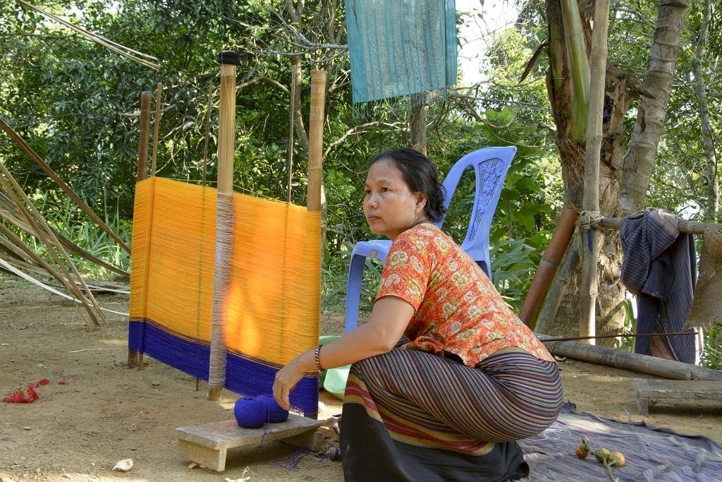 Returning to the boat I spot two Chakma ladies at a stall – one is smoking a bamboo pipe and the other shows me bright, handwoven fabrics for which the Adivasi are famous. Without hesitation I buy a scarf off her with an intricate pattern to offer to my wife – always a good idea.