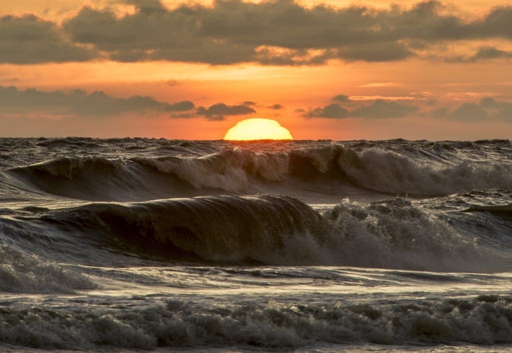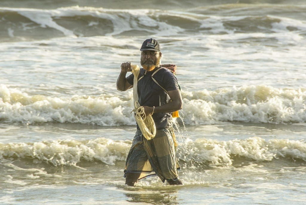The sun is already preparing itself for a dip into the Indian Ocean as I watch a lone fisherman braving the surf to cast his nets. Thanks to the low tide and the seabed’s gentle slope, he’s wading far into the waters. Completing the picture is an ominous dark yellow sky that turns all into a dramatic scene of man against the elements.