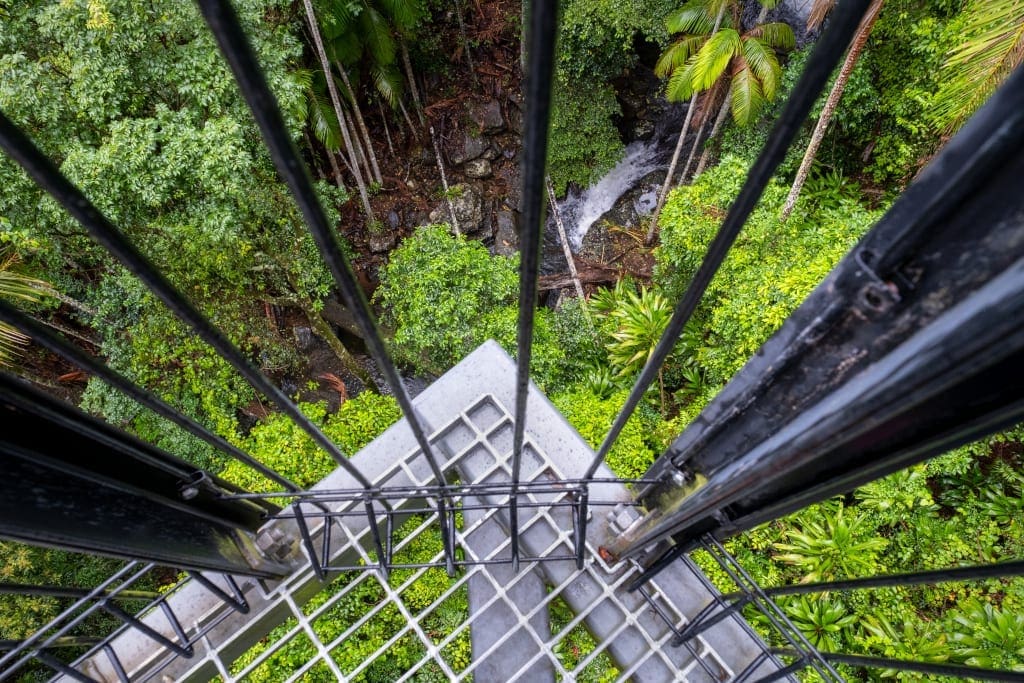 Being February, it’s the rainy season and we don ponchos (biodegradable – of course) to stay dry. We wander through lush canopies of 60-metre-high ghost trees, and stroll under hoop pines that, in the unlikely event of snow, would turn the forest into a Christmas wonderland. The refreshing rain has kept the crowds away, and apart from another couple, we have the Skywalk to ourselves.