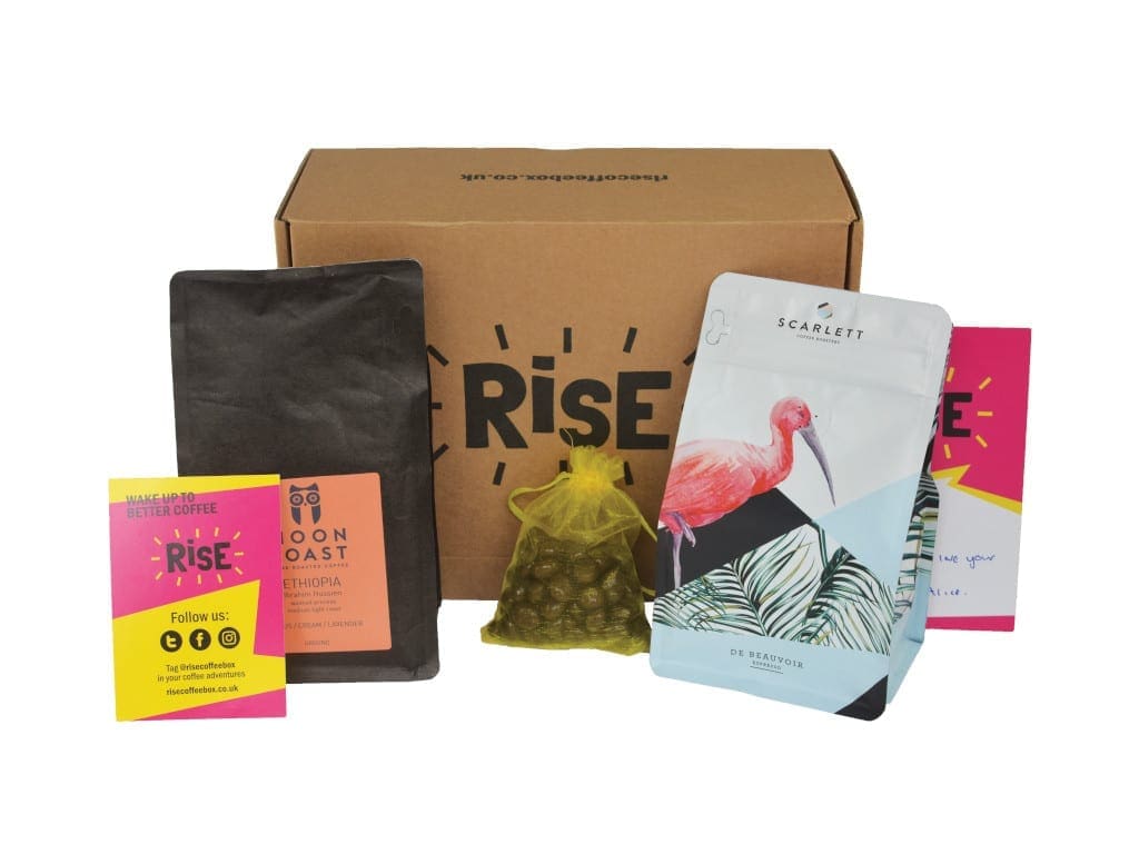 RISE Coffee Box subscription price is £16.99 (per month, bi-monthly or every three months). Delivery is free within the UK.