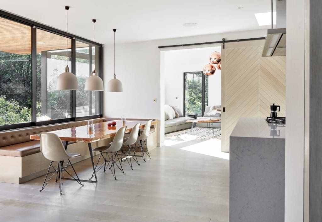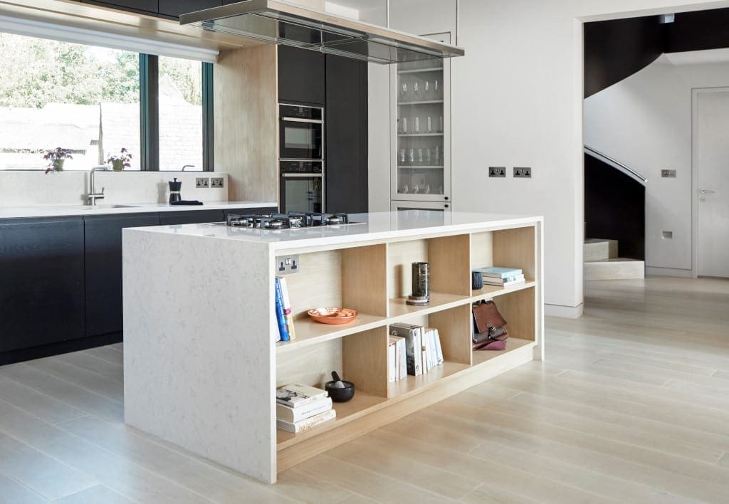 Inside, Blackwater is light and airy, a spacious stylish modern home. All the floors – with underfloor heating – are done in whitened oak. The huge black and white kitchen has everything you might need, together with a long table by the window that could sit twelve.