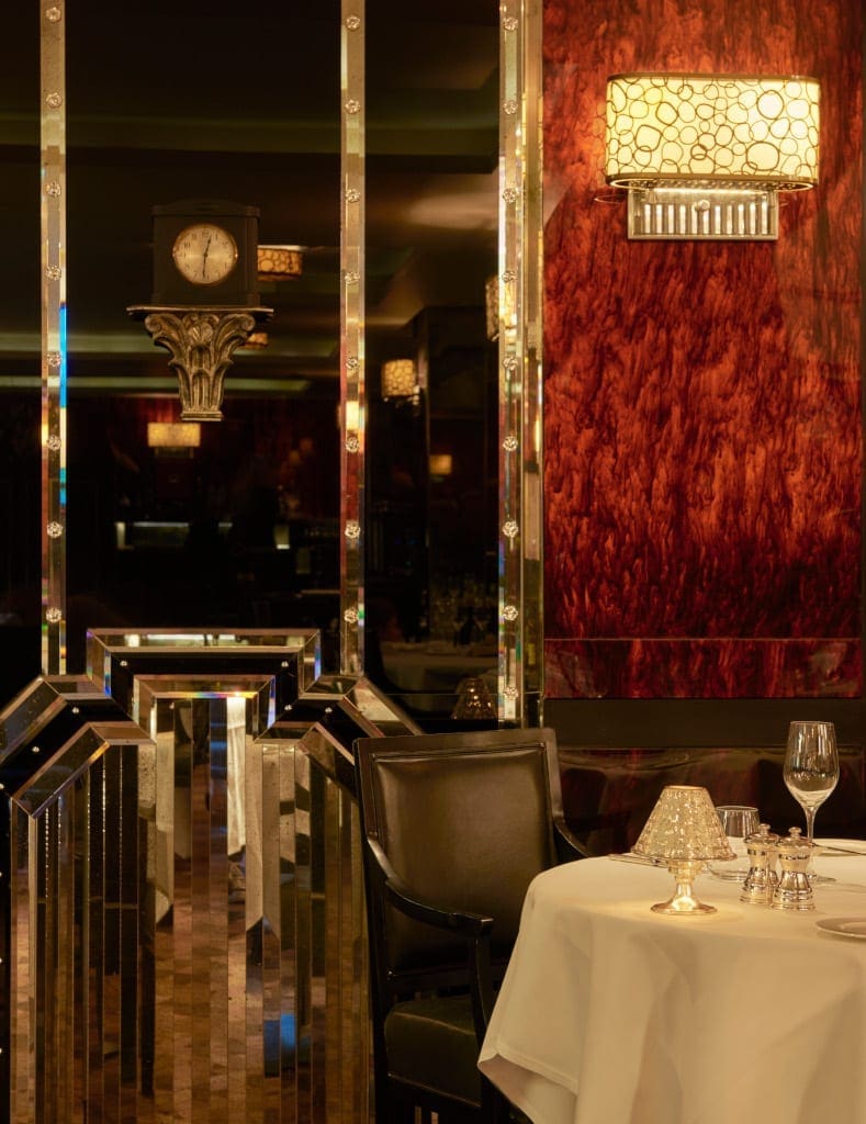 But first cocktails in the darkly theatrical Beaufort Bar, with its opulent black velvet furnishings and gold leaf on the walls, sipping our drinks to the accompaniment of the resident pianist playing – tonight – well-known ballads from the 70s and 80s. The raised bar here is where the cabaret stage once was, home to composer George Gershwin and pianist Carroll Gibbons.