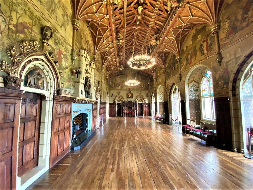 The lavish interiors were created for the Bute family between 1869 and 1881. The castle was decorated in the medieval style popular in the late 19th century, and is described as a “gothic revival fantasy.”