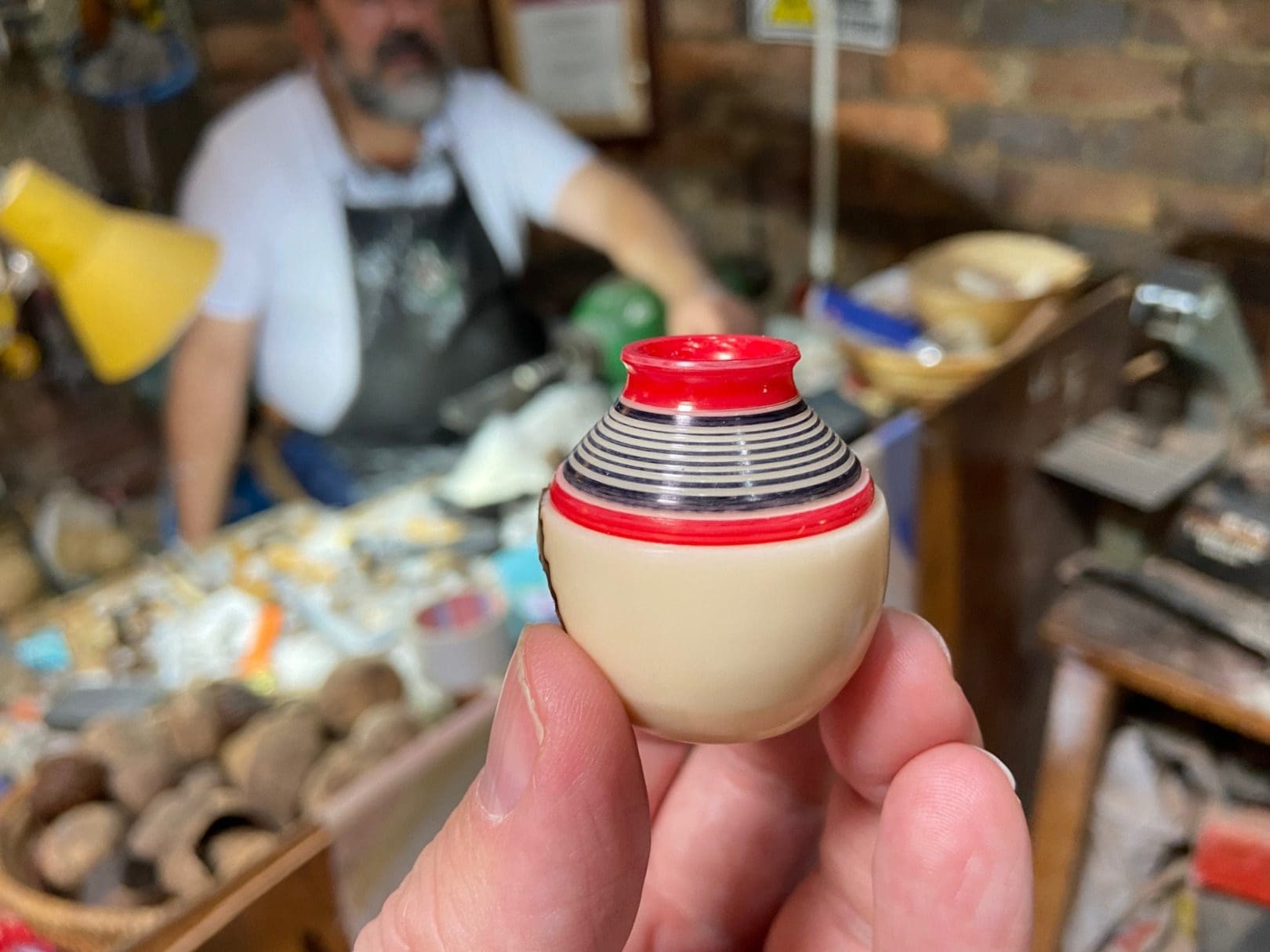 It takes him a few minutes to create a beautiful miniature vase before us. The waste from the process is used to create paper. According to Juan, the skill is dying out as there are only three families that make such objects from ‘natural ivory’ in Colombia.