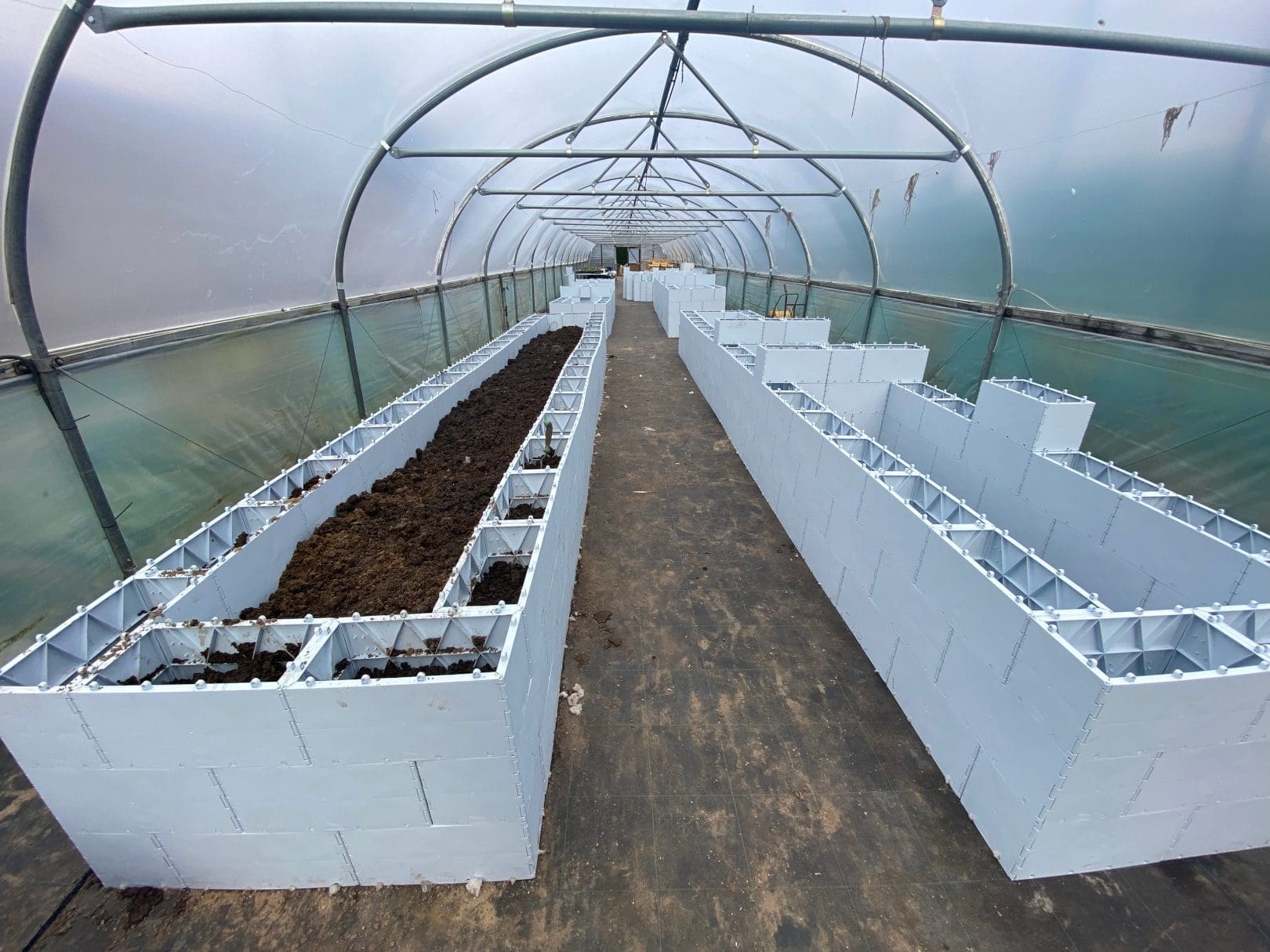The raised beds in which the plants are grown consist of Quick blocks made from marine waste, such as plastic bottles and nets. The gardens also accepts and reuses agricultural waste from local businesses, something which prevents them from claiming organic status, as the waste might not be organic. Even the plant pots are recycled.
