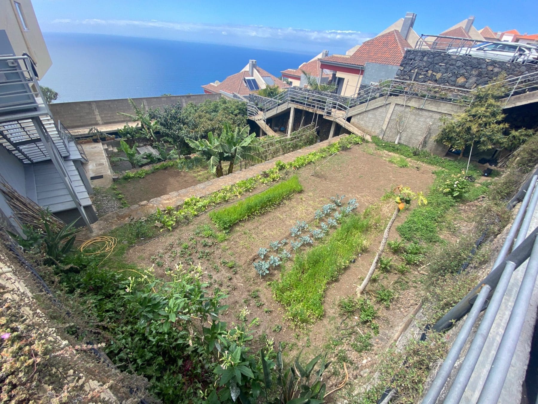 It takes nine months for a bunch of bananas to grow, the distinctive purple leaf is there to protect both the bananas and the flower which is external to the fruit. They average 150 bananas per bunch, all of which are sold to the local cooperative – only 6% of the bananas on the Canary Islands bananas are organic.