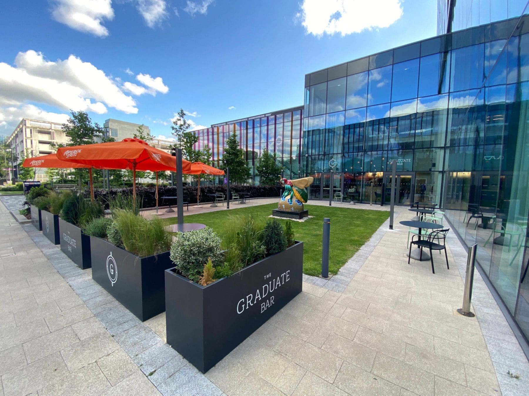 Artwork is a strong and attractive feature of the hotel. Outside in the small garden courtyard is Beejing, a statue created by Jessica Perrin, demonstrating a harmony between Mancunian and Chinese cultures. Bees are a symbol associated with the city of Manchester, something that has become strengthened in the city’s response to the 2017 Manchester Arena terrorist attack. You can find bee statues and images across the city.