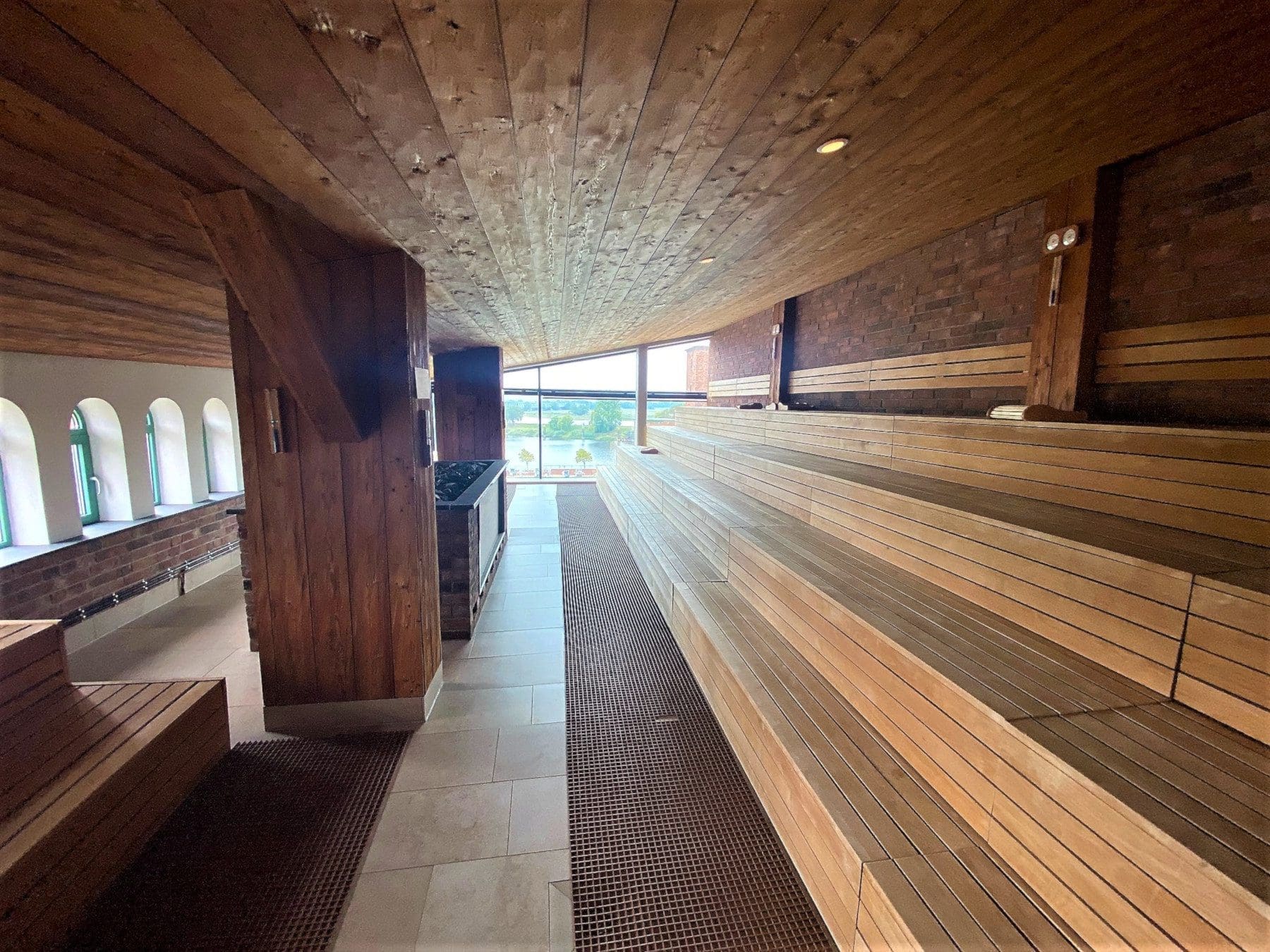 The buildings have been painstakingly restored and given new functionality in a largely post-industrial society. For instance the twin oil tankers have been converted into a climbing wall and diving tower. The old seed room now houses Loft Spa offering a great view of the river Elbe from its roof terrace, relaxation area or gargantuan 2,300sqm sauna. No wonder it attracts non-staying wellness guests.