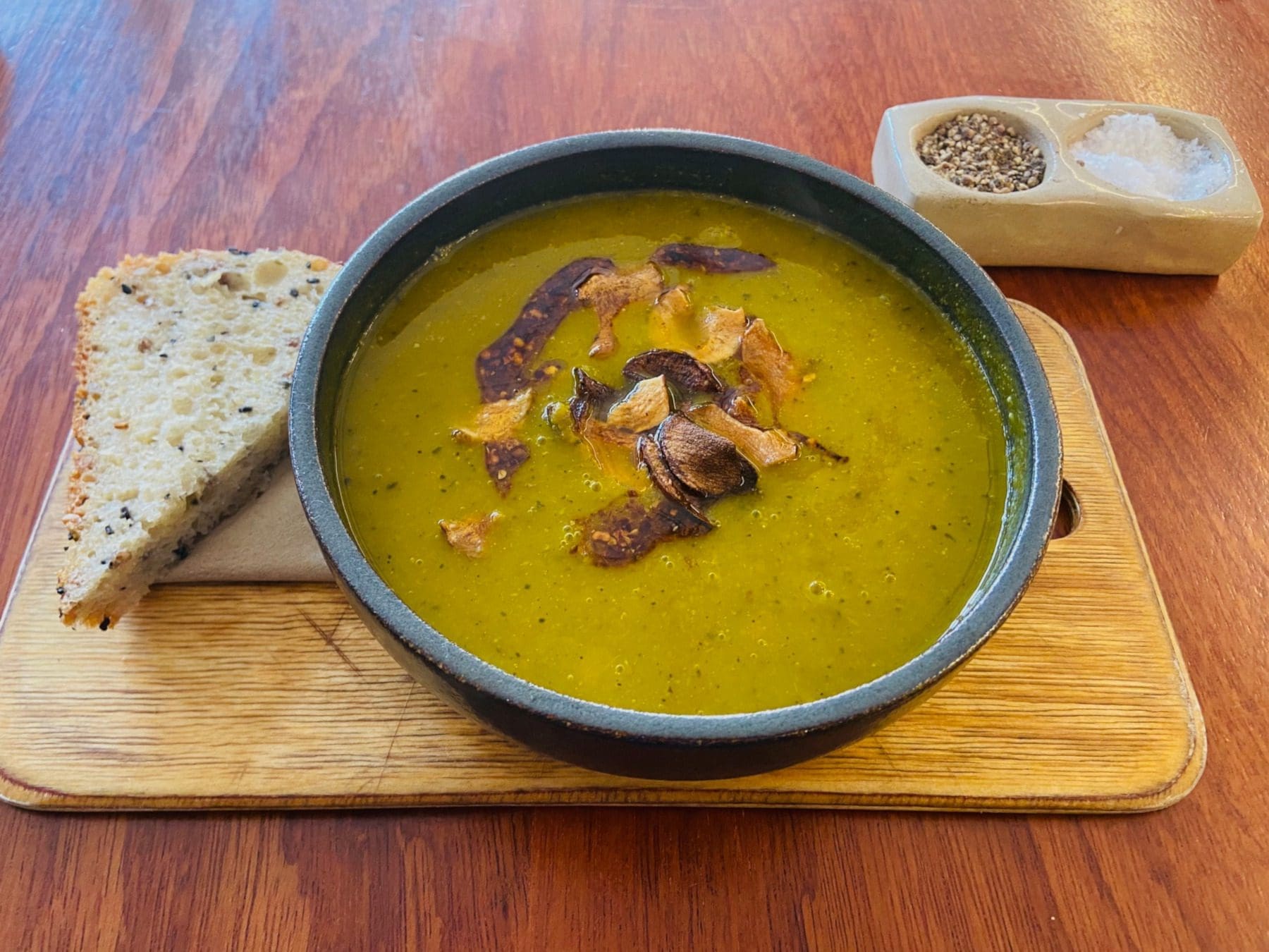 Run by Ash, The Fumbelly sells local, organic food from Irish farmers, as well as other select continental partners. They also have their own bakery. As I was waiting for my dish – a wonderful sweet pumpkin soup with chilli oil and artichoke crisps – to arrive, I chatted with Ciarán who is in charge of the food they sell.