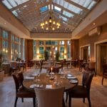 This is followed by a stone bass roasted to perfection. Succulent and full of flavour, it comes with hazelnuts which provide a wonderful crunchiness, seasonal pumpkin and a tempura prawn. Whisper it carefully but the kitchen might even be the equal of Headlam Hall’s.