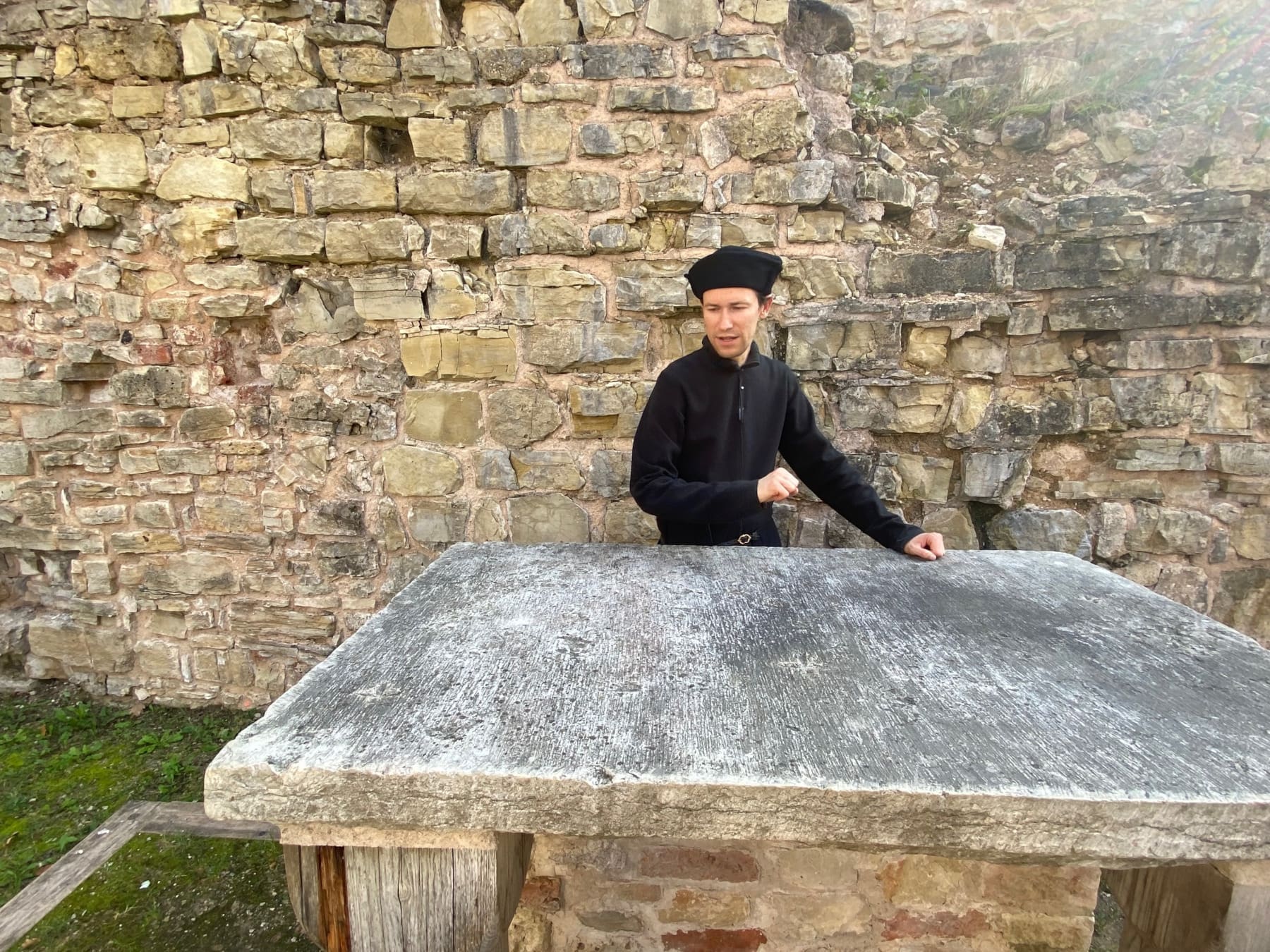 However, we are not to stay in Cēsis, but after lunch in the amazing Villa Santa, we reacquaint ourselves with Janis at Āraišu Lake which has an Iron Age site. At Cēsis Janis is dressed as a monk, and here he has donned the uniform of a stone age man. He reminds me of Mr Benn.