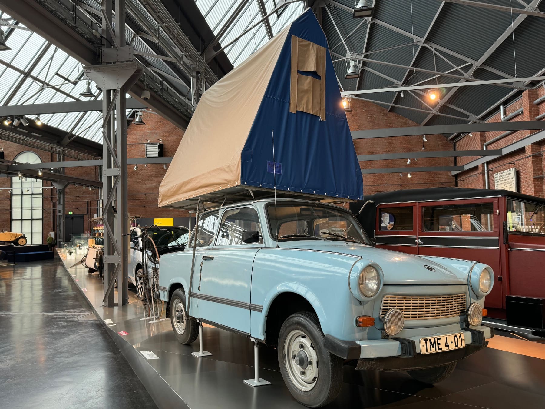 The museum makes for a very interesting visit and has several operating machines and engines, including a steam engine from 1896, although the oldest exhibit is a spinning machine from 1830. My personal favourite was a 1988 Trabant with a tent on its roof.