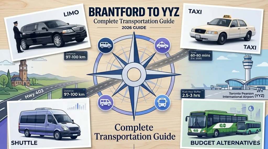 Need reliable transportation from Brantford to Toronto Pearson International Airport (YYZ)? This 2026 guide covers every practical option — from affordable Brantford airport taxi and luxury limo services to shared shuttles and budget-friendly public transport.