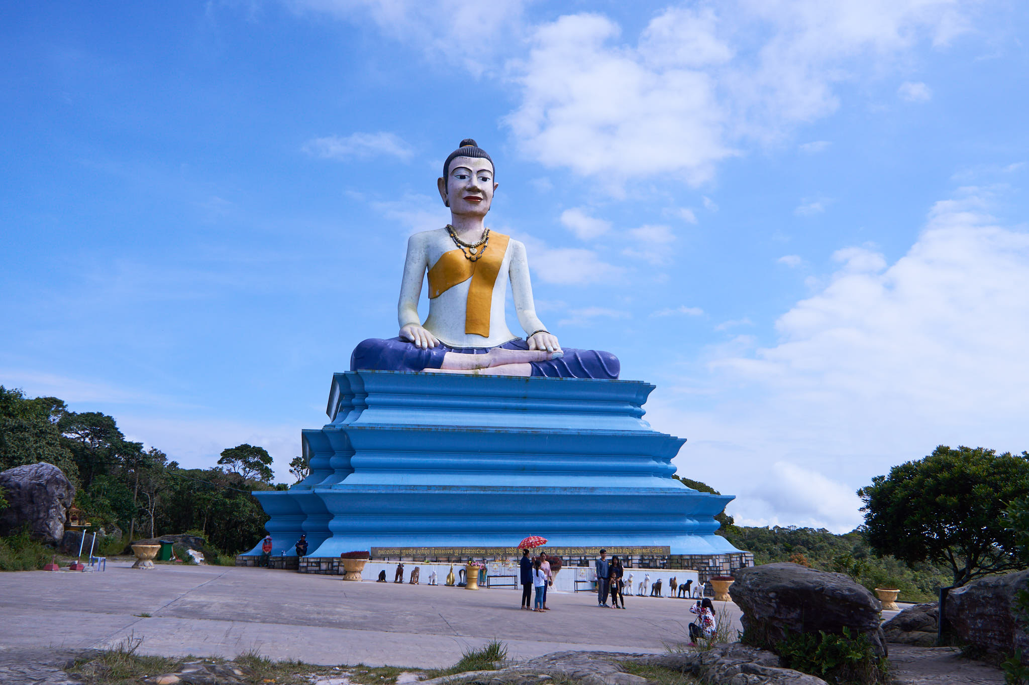 This huge statue that looms over the Bokor Mountain road was built in 2012 and is a favourite stop for locals to make offerings, hence the huge carpark and crowds that often gather at the foot of the monument.