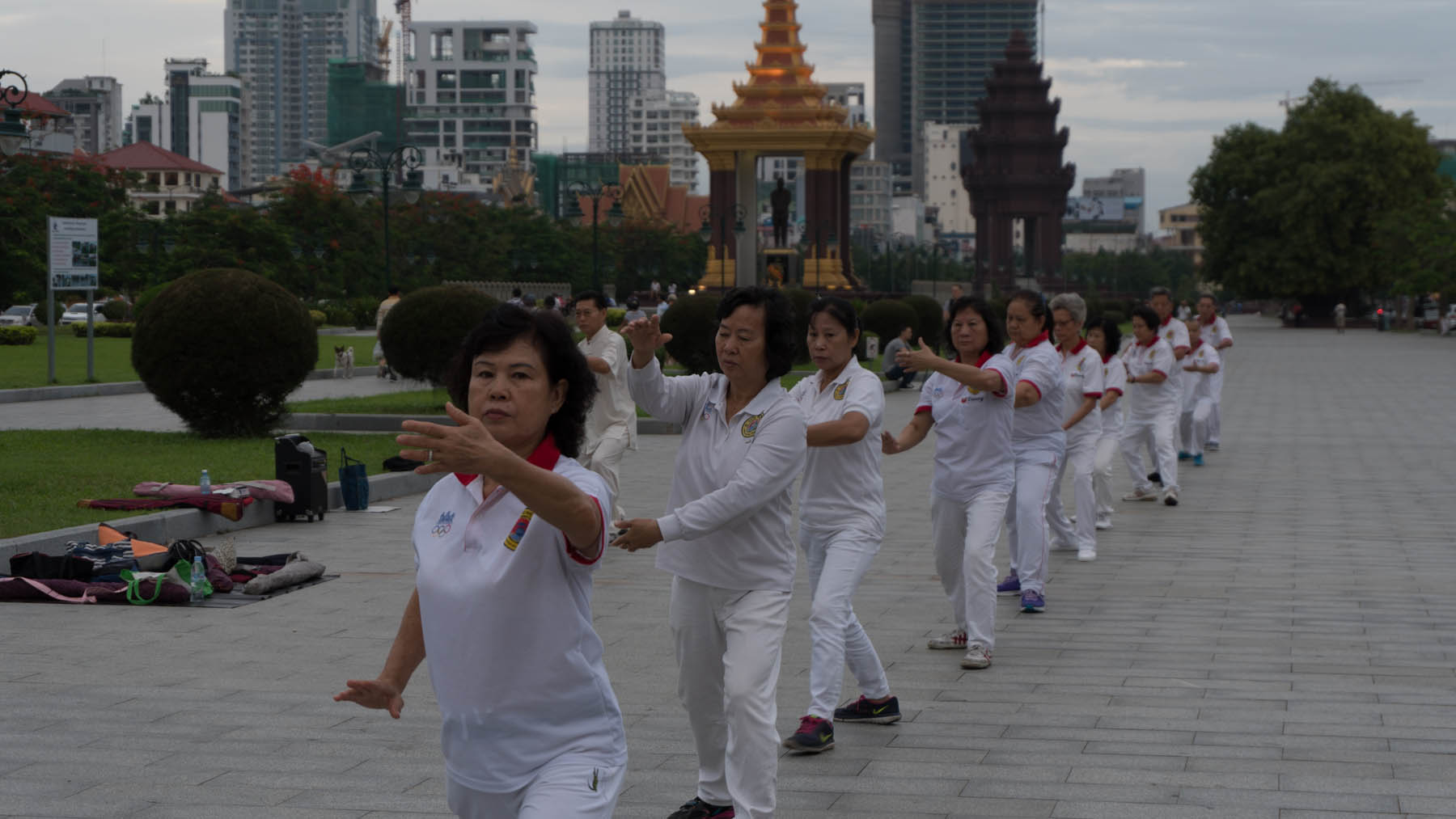 The park, which surrounds the monument, is also a popular place during the cooler early morning or evening hours for people to gather outside and exercise.