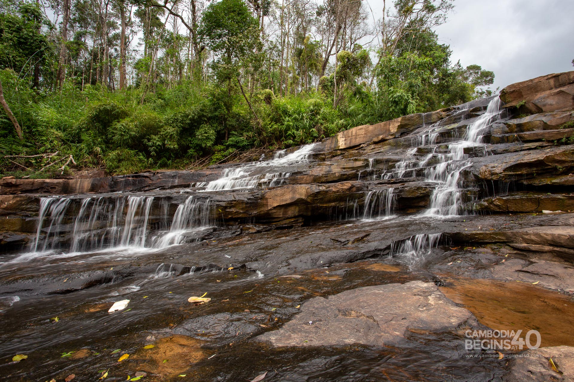 This is a multi-level waterfall with a surprising number of visitors considering its remote location. At the site, you will find the usual Khmer food vendors and wooden huts with hammocks to relax and picnic.
