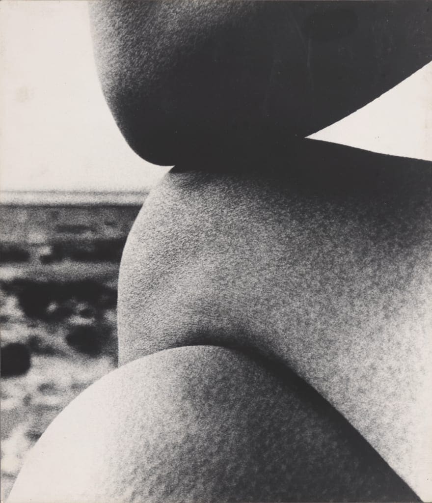 Brandt used photography to explore the physical aspects of both the landscape and body. His fluid, sensual images published in Perspective of Nudes (1961) and Bill Brandt Nudes (1980) resonate with Moore’s sculptures using a wide-angle lens in close-up. This causes the body shapes to appear distorted or sculptural as in Normandy (1959).