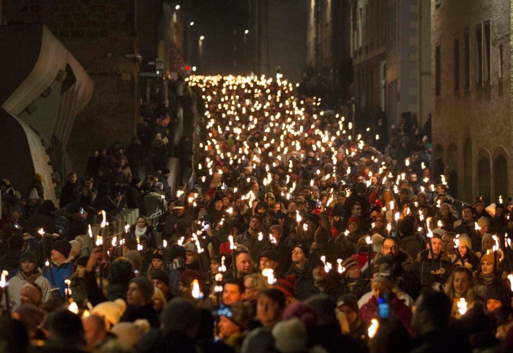 Edinburgh’s Hogmanay actually starts on 30 December (7pm) with a torchlight procession joining the Up Helly Aa Vikings through the streets of the capital along the Royal Mile to Holyrood Park.