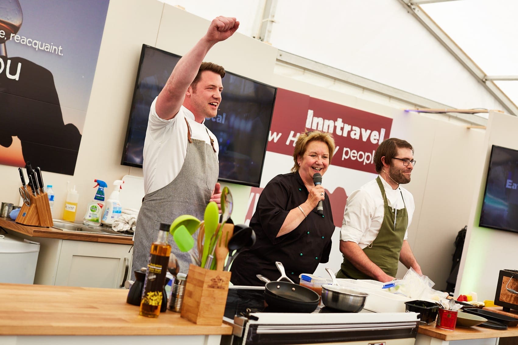 Highlights include chef demonstrations from Ollie Farrar, Freya Cox, Yemi Adelekan, Rowan Claughton, Callum Leslie, Harvey Maher and Dominic Franks.